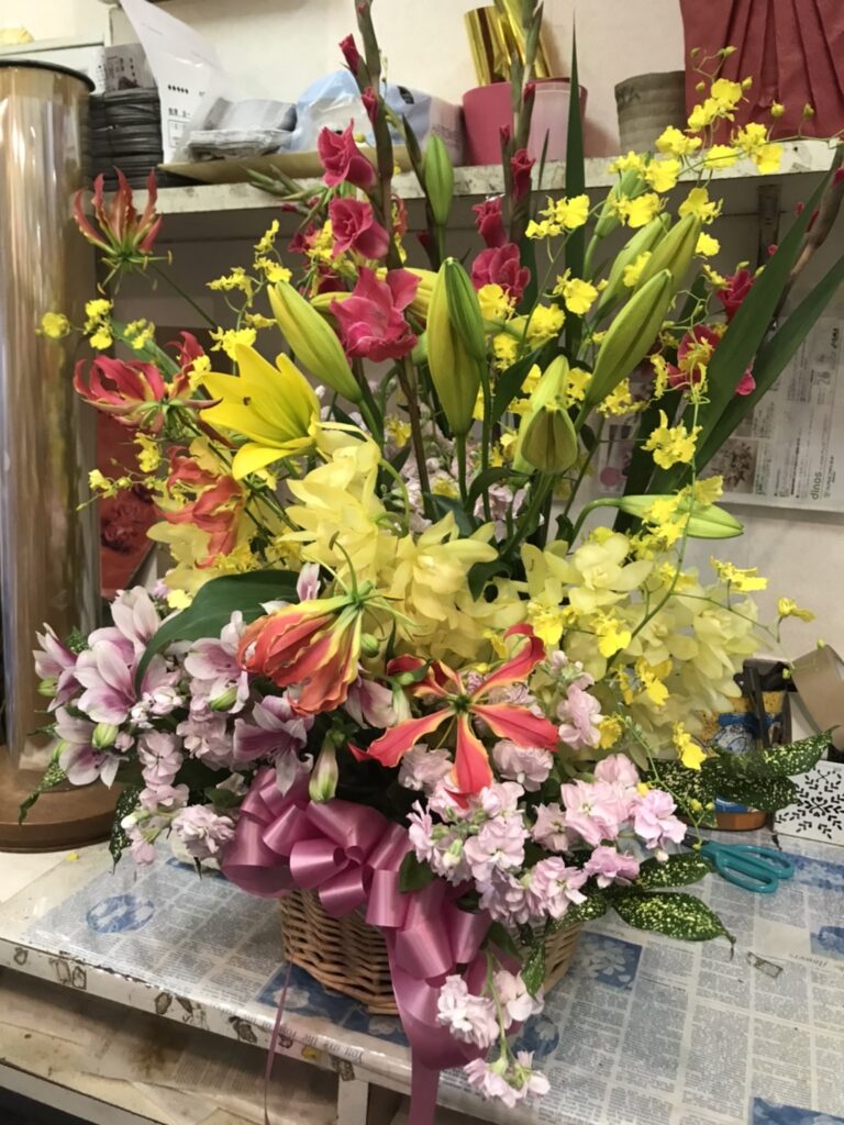 フラワーアレンジメントとしては、高価な税込み30,000円の注文がありました。事前に予約して頂いたので、それに合わせて仕入れることができるためリーズナブルに提供できました。突発的ですと、当店のような零細商では、在庫の花では思うようにできない場合があります。お恥ずかしい限りです。