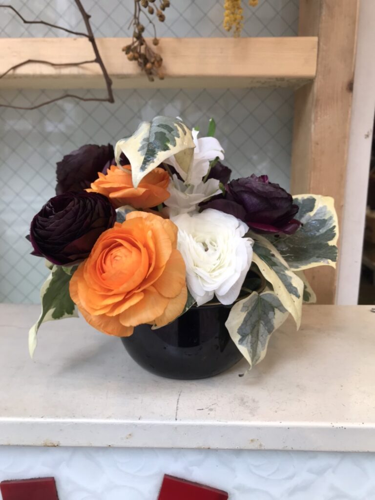 本日のアレンジフラワー アレンジフラワー X Facebook はてブ LINE コピー 2023.03.26 ラナンキュラス (オレンジ色 紫色 白色)アルストロメリア (白色)アイビー税込みで1000円です。お問い合わせ