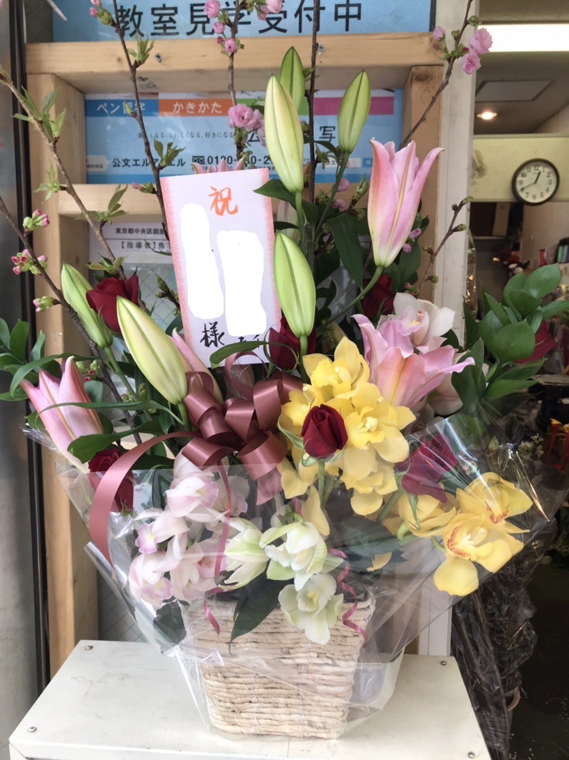 アレンジフラワー画廊に贈るフラワーアレンジメントです。