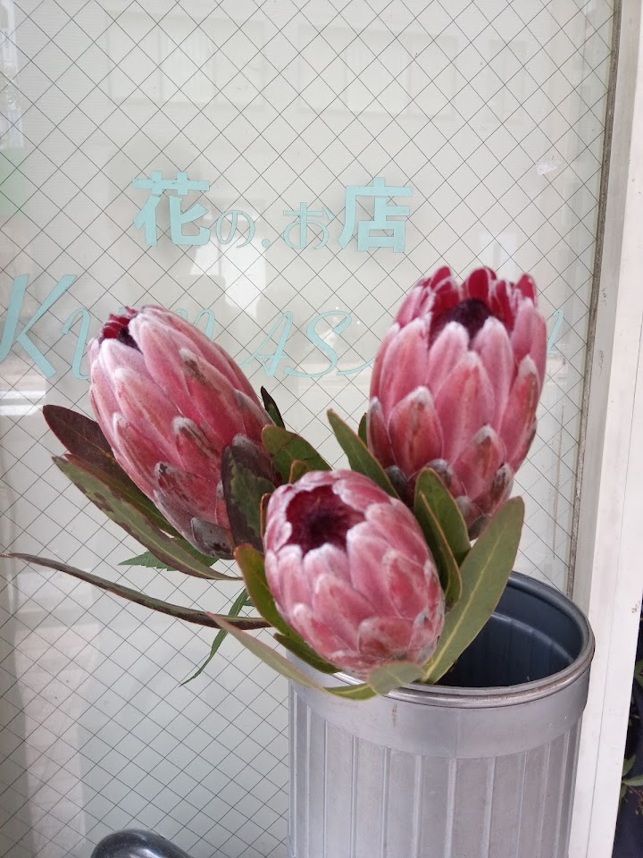 大きなエキゾチックな花で、約1億年前から存在しているといわれています。切り花も長持ちして、枯れても形が崩れないことが特徴で、南アフリカが原生地です。1本800円と少々高価です。